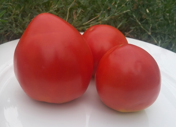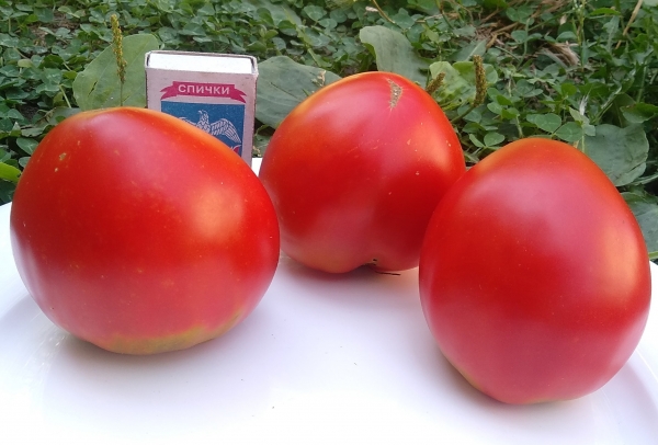 Плоды красные, сердцевидные, мясистые, вкусные. Средняя масса плодов 250 - 400 г. Мякоть зернистая, арбузного типа. Высокоурожайный, высокорослый, ранний сорт. Кусты мощные, высотой до 1,8 м и более.