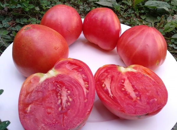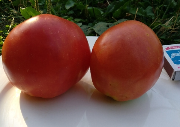 Сорт из Минусинска. Плоды сердцевидные, розово-малиновые, мясистые, сочные, вкусные. Масса плодов 300 - 600 г. Мякоть плотная, насыщенного вкуса. В кисти по 4 - 5 плодов. Высокоурожайный среднеспелый высокорослый сорт.