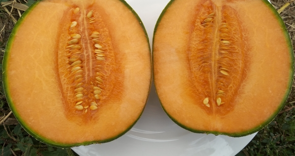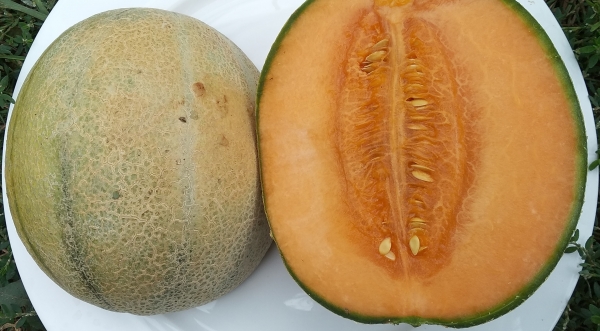 Новинка! Плоды овальные, серые с небольшими зелеными полосами на ребрах, с легкой сеткой. Мякоть оранжевого цвета, сочная, очень сладкая, с сильным мускатным ароматом. Масса плодов 1,5 - 2 кг. Среднеспелый сорт, устойчив к фузариозу.
