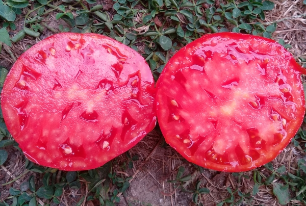 Новинка! (США) Плоды сердцевидные, вытянутые, с небольшими ребрышками, насыщенного красного цвета, с блестящей, глянцевой поверхностью, сочные, очень мясистые, сладкие. Масса плодов 250 - 500 г и более. Очень урожайный сорт среднего срока созревания, хорошо завязываются плоды при высокой температуре. Кусты высотой до 1,8 м.