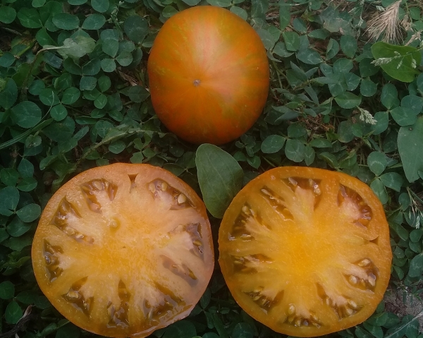 Новинка! Плоды темно-оранжевые с зелеными штрихами, хороши на вкус, малосеменные, мясистые, салатные. Масса плодов 300 - 500 г, отдельные - до 800 г. Высокоурожайный сорт среднего срока созревания, с растянутым периодом плодоношения. Кусты крепкие, высотой до 1,8 - 1,9 м, с крупными листьями.