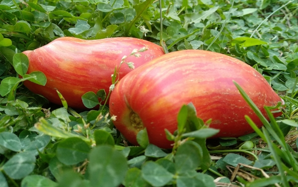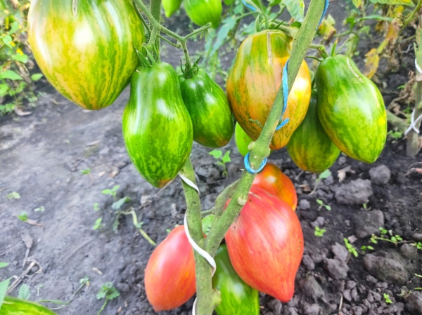 Новинка! Новый сорт от американского селекционера Блейна Хортона (Blane Horton), получен в результате скрещивания сортов Cherokee Tiger и Kosovo. Плоды удлинённо-сливовидные с тупым носиком, малиново-розового цвета с жёлтыми полосками, умеренно плотные и сочные, относительно лёжкие, ароматные, приятные на вкус, сладкие с лёгкой кислинкой. Масса плодов около 80 г. Урожайный сорт с длительным периодом плодоношения. Куст высотой около 60 -70 см, лист обычного типа.