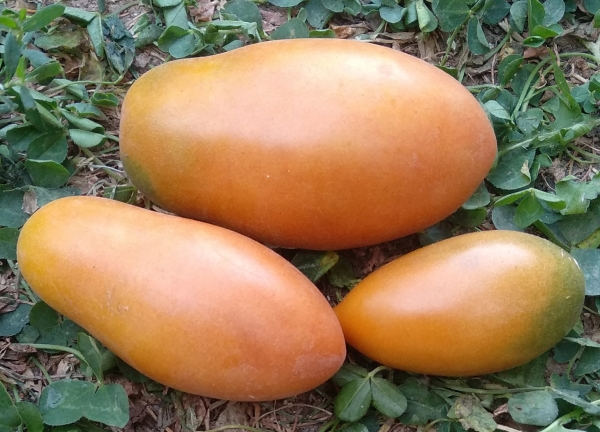 Новинка! Плоды сливовидной формы, тёмно-оранжевые, с оттенком охры, плотные, мясистые, в то же время, сочные, терпко-сладкие на вкус. Масса плодов 80 - 120 г. Высокоурожайный среднеспелый сорт, с длительным периодом плодоношения. Кусты высотой до 60 - 70 см, лист морщинистый, обычного типа.