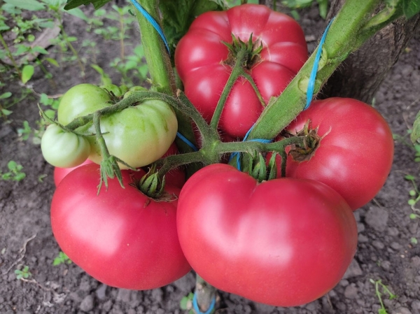 Новинка! Один из лучших сортов-гномов этого сезона. Плоды очень крупные для сортов-гномов, плоскоокруглые с пышными плечиками, насыщенного малиново-розового цвета. Масса плодов до 350 – 400 г. Мякоть вкусная, довольно плотная. На вкус плоды превосходны, сочетают в себе сладость и терпкость. Урожайный среднеспелый сорт. Кусты высотой около 80 см, с крупными морщинистыми листьями обычного типа.
