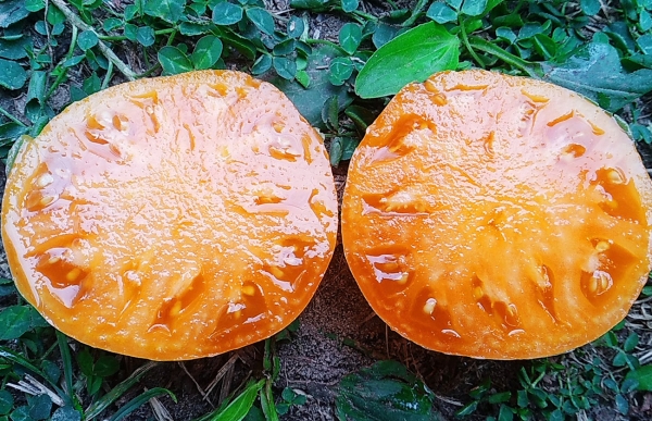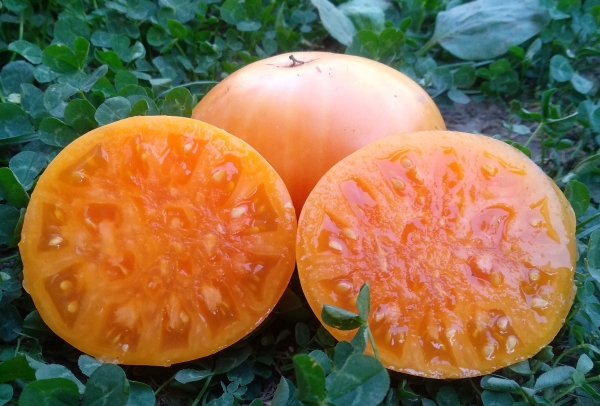 Новинка! Плоды плоскоокруглые, насыщенного ярко-оранжевого цвета, мясистые, гладкие, умеренно плотные, с густой мармеладной мякотью, обладают отличными вкусовыми качествами и интенсивным ароматом. Масса плодов 150 – 250 г (до 300 г). Новый среднеспелый, очень урожайный сорт. Кусты высотой около 70 см, лист картофельного типа.