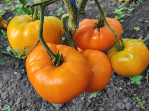 Новинка! Плоды оранжевые, сердцевидной формы, мясистые, сочные, ароматные и очень вкусные. Мякоть насыщенно-оранжевая, довольно плотная, медово-сладкая. Масса плодов 300 - 600г. Урожайный среднеспелый сорт. Растения мощные, энергичные, высотой до 1,8 м.