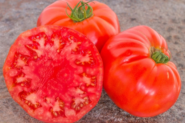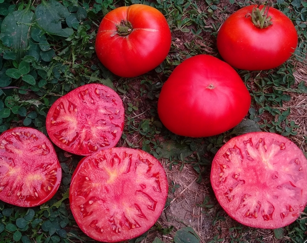 Новинка! Старинный семейный сорт из Италии. Плоды плоско-округлые, ярко-красные, мясистые. Масса плодов 400 – 800 г. Мякоть сладкая, нежная, сочная, насыщенного вкуса. Очень урожайный среднеспелый сорт. Кусты высотой 1,8 м, крепкие.