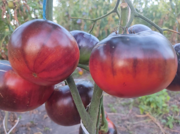 Новинка! (США) Плоды незрелые темно-фиолетовые, при созревании малиново-красные с черно-фиолетовым, плоскоокруглые, с ребристостью, плотные, мясистые, но сочные и сладкие на вкус. Масса плодов 200 - 450 г, максимум до 650 г. Очень урожайный среднеспелый сорт, с высокой болезнеустойчивостью. Кусты высотой 1,4 - 1,7 м.