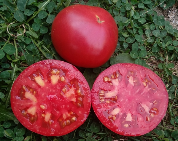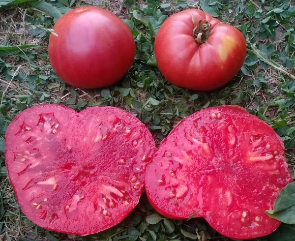 Новинка! (США) Плоды плоскоокруглые, розовые, мясистые, отличные на вкус, ароматные. Масса плодов до 1 кг, в среднем 400 – 500 г. Высокоурожайный, среднепоздний сорт. Кусты высотой до 1,5 м, с картофельными листьями.