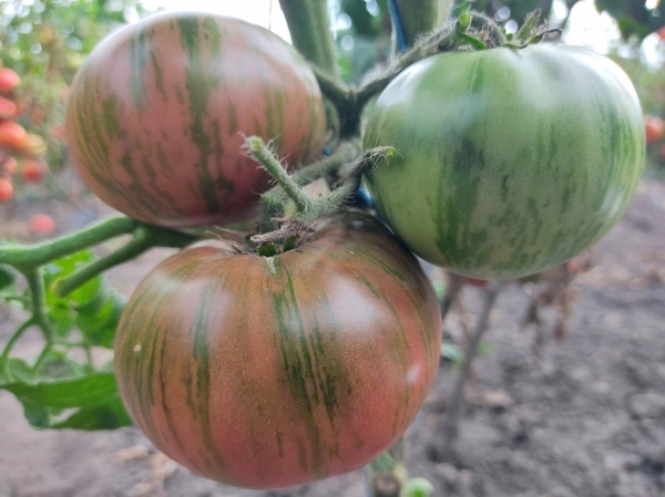 Новинка! Сорт получен от скрещивания сортов Dwarf Wild Fred и Beauty King. Результат коллективной работы, а назвала сорт Сюзанна Дзеячок (Suzanne Dzejachok). Плоды плоскоокруглые, бордово-розовые, с темно-зелеными полосами. Масса плодов 120 - 320 г. Мякоть сочная, мясистая, сладкая с легкой кислинкой. Урожайный среднеспелый сорт. Кусты высотой 0,8 - 1 м, лист морщинистый.