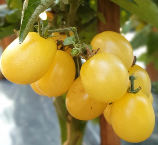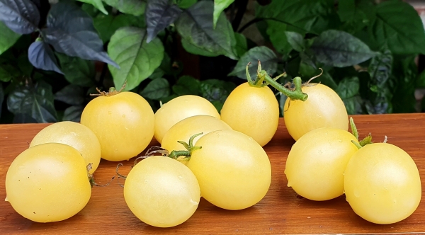 Новинка! Сорт из семейства Snowy family, получен от скрещивания Snow White Cherry и красного помидора из F2 Sleepy line. Плоды - овальные черри светло-желтого цвета, с носиком, сочные, превосходные на вкус. Масса плодов около 25 - 40 г. Высокоурожайный среднеспелый сорт. Растения компактные, штамбовые с морщинистыми обычными листьями.