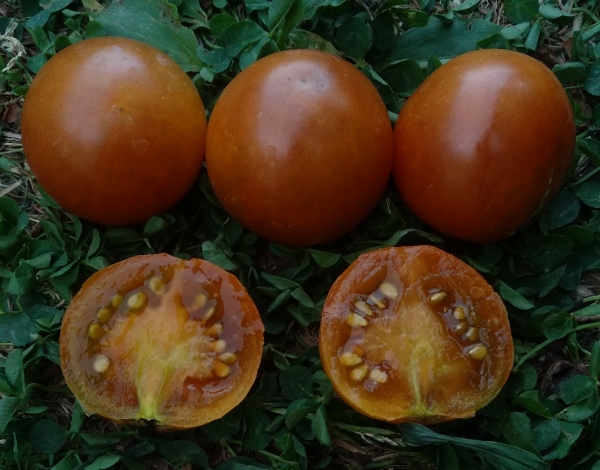 Новинка! Сорт селекционера Блейна Хортона (США). Плоды круглые, цвета охры. Масса плодов 30 – 50 г. Подходят как для свежего потребления, так и для консервирования. Хорошо хранятся после сбора урожая. Сорт ранний, один из самых урожайных из проекта Dwarf Tomato Project. Кусты в открытом грунте высотой до 50 см, в теплице могут вырасти до 80 см, с крупными темно-зелеными, морщинистыми листьями.