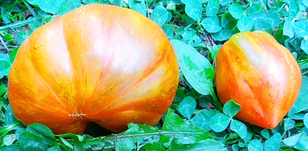 Новинка! Плоды перцевидные, красивы как снаружи, так и внутри: с бордовыми, зелёными и оранжевыми полосками, малосеменные, мясистые, сочные, сладкие. Масса плодов 120 - 300 г. Урожайный среднеспелый сорт. Кусты высотой около 1,7 м.