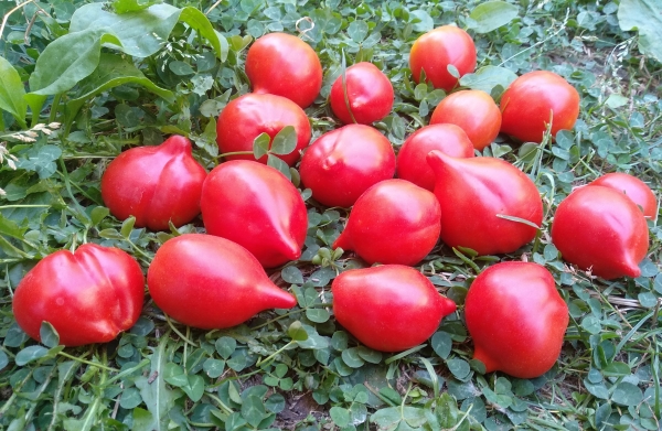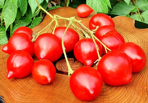 Новинка! Сорт из Германии, буквальный перевод его названия - "красный сердцевидный томат". Плоды красные, сердцевидные с удлиненным носиком, собраны в огромные кисти. Масса плодов 30 – 60 г. Мякоть очень плотная, вкусные. Высокоурожайный ранний сорт, с длительным периодом плодоношения. Кусты раскидистые, высотой до 1,5 м, с обычной листвой.