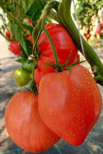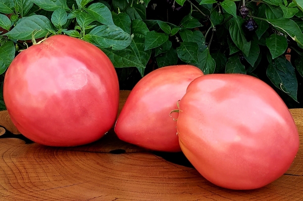 Новинка! Сорт народной селекции из Минусинска. Плоды насыщенно розовые, в виде ромбовидного сердца, плотные, мясистые, сладкие, без кислинки. Масса плодов 250 - 400 г и до 600 г. В кистях 2 - 4 завязи, дружное созревание. Высокоурожайные, среднеспелый сорт. Кусты высотой до 2 м.