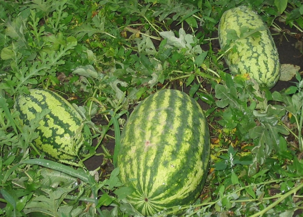 (Италия) Плоды удлиненные, цилиндрические, светло-зеленые с темно-зелеными полосами, тонкокорые. Мякоть насыщенно-красного цвета, плотная, зернистая, вкусная, сладкая, с небольшим количеством семян. Масса плодов 8 - 10 кг. Плоды транспортабельные и хорошо сохраняются. Высокоурожайный, среднеспелый сорт.