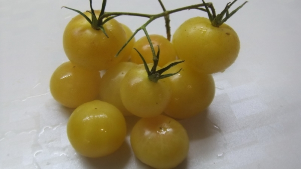 Новинка! Плоды круглые, светло-желтые, с розовым румянцем, сладкие, вкусные. Масса плодов 40 - 50 г. Растут кистями по 6 - 9 шт. Высокоурожайный, средне-ранний, высокорослый сорт.