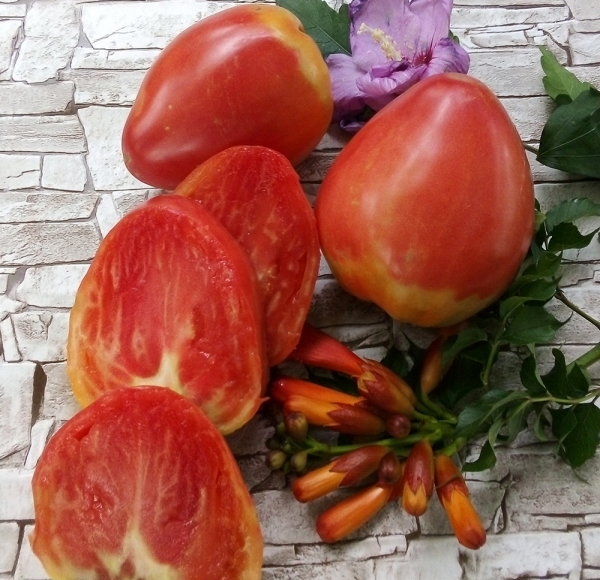 Новинка! Плоды – слегка ребристые розовые сердца, мясистые, плотные, малосеменные, хороши на вкус. Кожица не толстая. Масса плодов до 500 г. Кусты высотой до 1,9 м. Среднеспелый сорт, с урожайностью выше средней.