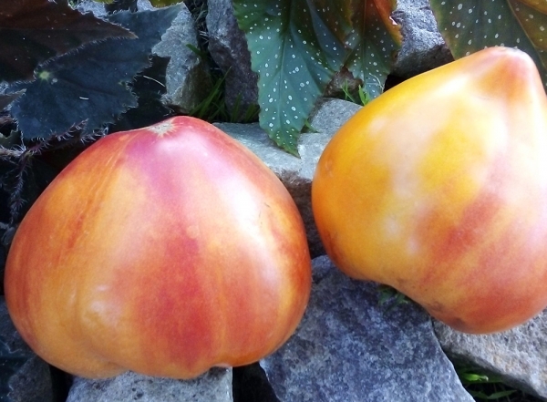 Новинка! Плоды сердцевидные, с удлиненным носиком, желто-оранжевые, с розовыми разводами, вкусные, сладкие. Масса плодов 200 - 300 г. Кусты высотой до 2 м. Урожайный среднеспелый сорт.