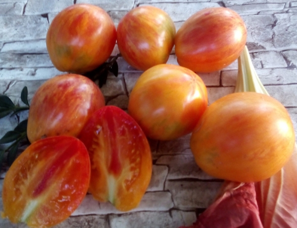 Новинка! (Польша) Плоды разной формы с выраженной ребристостью, пестрые: на желто-оранжевом фоне красно-малиновые мазки и полосы. Мякоть желто-розовая, плотная, но сочная, очень сладкая и ароматная, на вкус можно считать одной из лучших. Масса плодов от 80 - 150 г. Кусты высотой в открытом грунте 1,5 - 1,7 м. Сорт среднеранний, болезнеустойчивый, с длительным плодоношением.