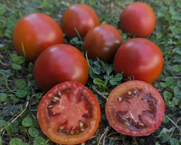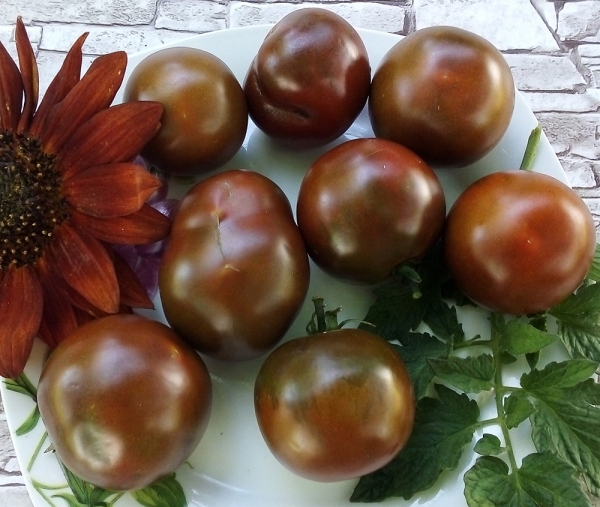 Новинка! Плоды идеально круглые, коричневые в нижней части и красно-черные у вершины, упругие, довольно мясистые и сочные, на вкус не очень сладкие. Масса плодов 50 - 70 г. Их можно срезать кистями. В кистях по 6 плодов. Высокоурожайный среднеспелый сорт. Кусты высотой до 1,6 м.