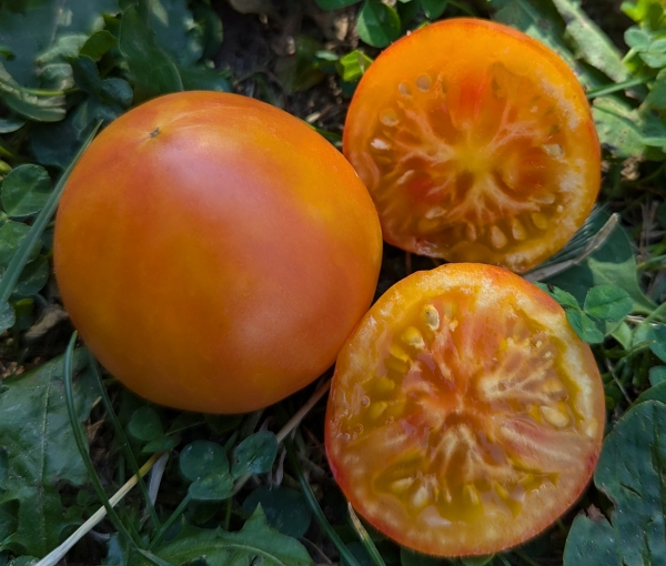 Сорт получен скрещиванием сортов Isis Candy и Брэндивайн желтый, подчеркивает положительные стороны каждого из них. Плоды круглые, желто-оранжевые, с красновато-розовыми мазками и румянцем, сочные, сладкие на вкус. При полном вызревании мякоть становится красноватой. Масса плодов 30 - 50 г. Высокоурожайный среднеспелый сорт. Кусты высотой до 1,8 м.
