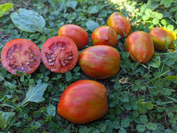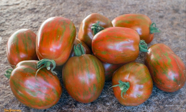 Новинка! (Австралия - США) Один из сортов из линии сортов "Киви", полученный Шерри Лонг (Sherry Long) от скрещивания Dino Eggs и Dwarf Project Lazy family (Kangaroo Paw Brown F4 x Purple Russian). Плоды сливовидные, удлиненные, цвета махагони, с зелеными полосами. Масса плодов 60 - 120 г. Мякоть плотная, со сбалансированными вкусовыми качествами. Растения штамбовые, с обычной морщинистой листвой, высотой до 1,4 м. Можно выращивать в больших горшках. Высокоурожайный среднеспелый сорт.
