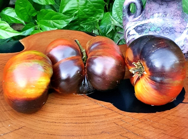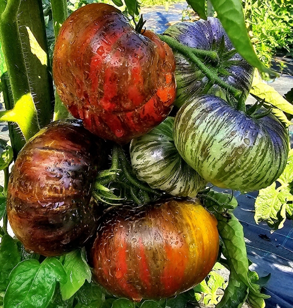 Новинка! (США) Сорт селекции Рассела Кроу (Russ Crowe), произошел от скрещивания сортов Rebel Starfighter Prime и Dwarf King Aramis. Плоды полосатые: сочетаются красные, бронзовые, зеленые и оранжевые цвета, с антоциановыми разводами, плоско-округлые, слегка ребристые, сочные, мясистые, малосеменные, вкусные, сладкие, ароматные. Масса плодов 150 - 250 г. Растения сильные, высотой 60 - 80 см, с обычной листвой. Очень урожайный среднеспелый сорт.