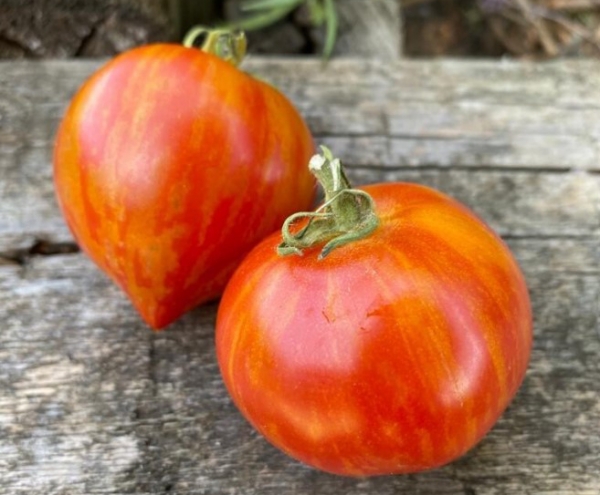Новинка! (США) Сорт селекции Дина Слайтера. Плоды сердцевидные, красные с золотистыми штрихами, плотные, мясистые, сладкие. Масса плодов 70 - 90 г. Урожайный среднеранний сорт. Кусты высотой 0,6 - 0,7 м в открытом грунте, до 1 м - в теплице.