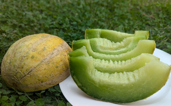 Новинка! Плоды желтого цвета, с зелеными полосами, овальные. Масса плодов 1,2 - 3 кг. Мякоть бледно-зеленая с кольцом вокруг семенной полости желто-оранжевого цвета, очень сочная и сладкая, ароматная. Высокоурожайный ранний сорт. Растения быстрорастущие.