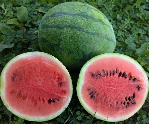 Новинка! Плоды круглые, светло-зеленые с темно-зелеными полосками. Мякоть красно-розового цвета, превосходная на вкус. Масса плодов 2 – 4 кг. Семена мелкие, черные. Урожайный ранний сорт.