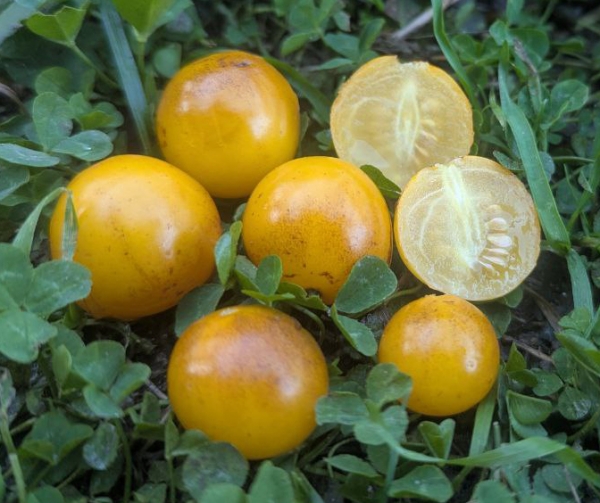 Новинка! Плоды круглые, желтые, с антоциановым напылением, сладковатые на вкус, сочные и мясистые. Масса плодов 20 - 30 г. Очень урожайный средне-ранний сорт. Кусты высотой до 1,3 – 1,5 м.