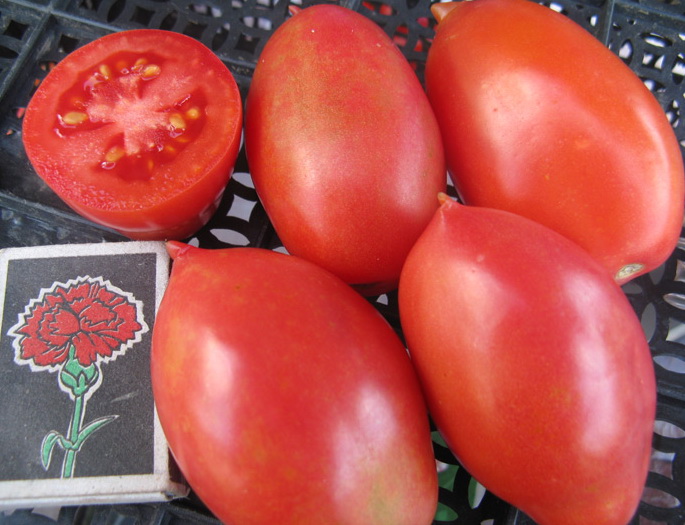 Раннеспелый сорт. Высота растения 50-60 см. Кисти с 6-7 плодами овальной формы, розово-красного цвета. Масса плодов 50-60 г, они плотные и сахарные. Отличительными качествами сорта являются: дружное формирование урожая, способность развиваться при любых погодных условиях, устойчивость к заболеваниям, высокие вкусовые качества.