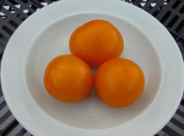 Супер-карлик с плодами не по росту. Садить следует густо. Большой урожай с небольшой площади. Плоды округлые, желтые, сладкие, сочные. Масса плодов около 60 г. Сорт ранний, высота куста около 30 см.
