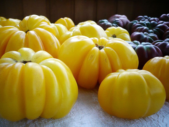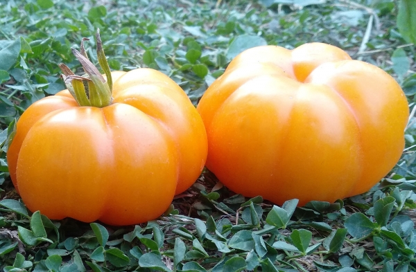 Плоды желтые, сильно ребристые. Их можно назвать «помидорной розой». Это аналог Американского ребристого, но желтого цвета. Масса плодов до 500 г и более. Сорт среднего срока созревания. Кусты в открытом грунте высотой до 1 м, в теплице могут быть до 1,8 м.