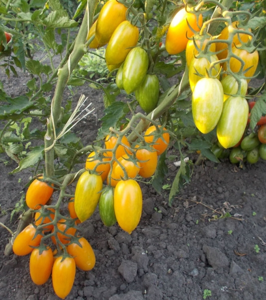 Очень урожайный сорт, выведен Фредом Хемпелем в Калифорнии (США) в 2011 году. Плоды удлиненные, двуцветные, массой около 30 - 40 г, ароматные, на вкус гармонично кисло-сладкие. Их легко спутать с какими-нибудь экзотическими фруктами и, тем не менее, это помидоры. Сорт среднего срока созревания. Кусты высотой до 1,8 м.