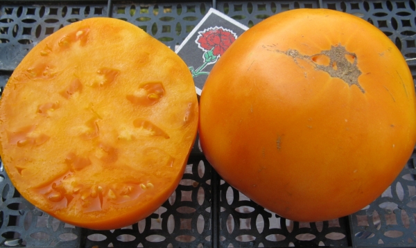 Плоды оранжевые - словно налитые мёдом, вкусные, сладкие. Масса плодов около 400 г. Сорт среднего срока созревания. Кусты высотой до 1,20 м.