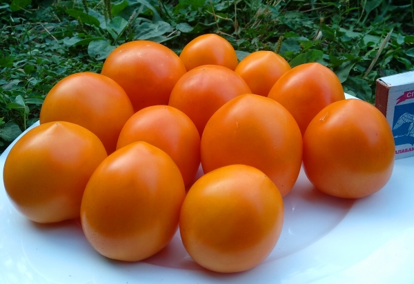 Плоды плоско-округлые, оранжевые, сладкие, малосеменные. Масса плодов около около 150 г. Плоды устойчивы к растрескиванию. Очень урожайный сорт среднего срока созревания. Кусты высотой до 1 м.