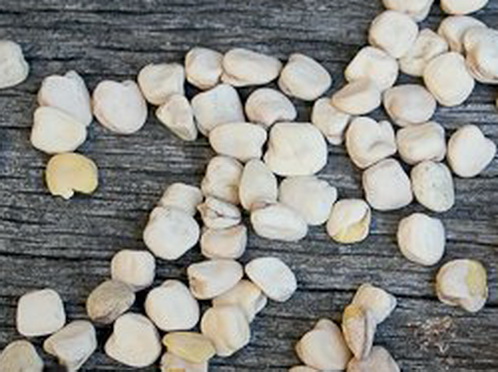 Родственник гороха с плоскими прямоугольными белыми семенами. В зелёном виде зёрна сладкие, их очень любят дети. В дозревшем виде используется в суп. Куст ложится на землю, стручки плоские.