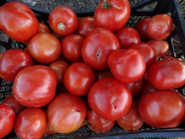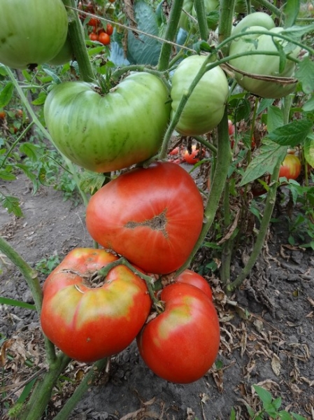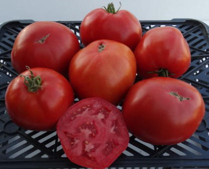 Плоды красные, округлые с гранями, одномерные. Имеют толстую оболочку, очень красивый внешний вид, отличный вкус. Прекрасно подходят  для рынка и засолки. Масса плодов 150-200 г. Очень мощные и урожайные кусты, высотой до 1,8 м. Сорт среднего срока созревания.