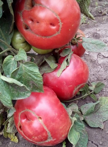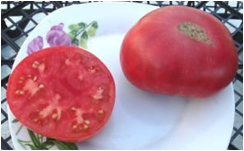 (США) Плоды розовые, плоско-округлые, ровные. Очень вкусные и сочные. Мякоть плотная, ароматная, сахарная. Масса плодов 300 - 500 г. Сорт среднего срока созревания с высокой урожайностью. Стабильный урожай в любую погоду. Кусты высотой до 1 м. Листья картофельные.