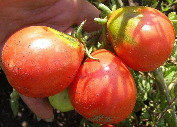Плоды красные, грушевидной формы, плотные, не трескаются, устойчивы к гнилям, отличного гармоничного вкуса. Масса плодов около 120 - 200 г. Сорт среднего срока созревания. Плоды завязываются в широком диапазоне температур. Кусты низкорослые, с повышенной устойчивыостью к заболеваниям.