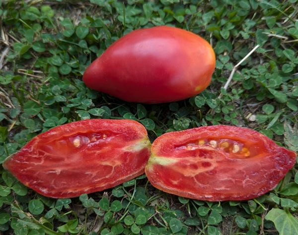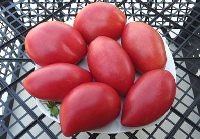Плоды удлинённые, насыщенного тёмно-розового цвета, сладкие, сочные, но не текут, мясистые, многокамерные, стенки средней толщины, перегородки толстые. Масса плодов 100 - 130 г. Урожайный сорт среднего срока созревания, универсального назначения. Кусты высотой до 1,8 м.