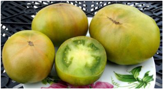 Плоды светлые, зелено-желтые, покрыты красноватым румянцем, вкусные, ароматные. Масса плодов 120 - 200 г. Кусты высотой до 1 м. Сорт среднего срока созревания. Лист картофельный.