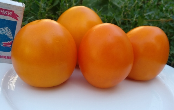 Ультраскороспелый высокоурожайный сорт для открытого грунта. Плоды красивой сердцевидной формы, слаборебристые, оранжевого цвета, с повышенным содержанием B-каротина, растут кистями по 5 - 7 штук. Масса плодов - 110 - 200 г. Они предназначены как для потребления в свежем виде, так и для переработки. Сорт устойчив к основным заболеваниям. Кусты прочные, высотой 30 - 40 см.