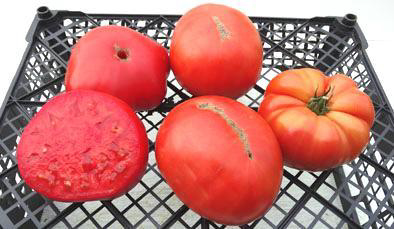 (США) Плоды красные, округло-плоские, с ребрышками возле плодоножки, глянцевые, упругие, мясистые и сочные, с отличным сбалансированным вкусом. Мякоть насыщенного красного цвета. Масса плодов 200 - 600 г. Очень урожайный сорт среднего срока созревания. Кусты высотой около 1,5 м.