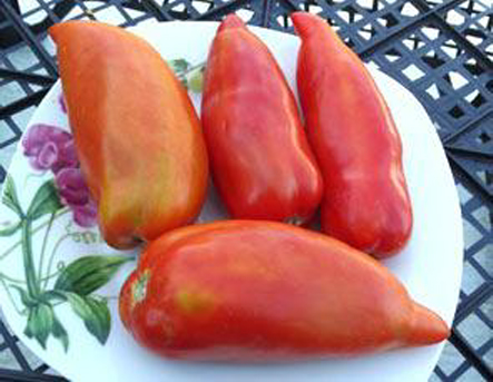 (Польша-США) У этого сорта своя длинная история. В 19-м веке вместе с польскими иммигрантами он попал в США, а теперь возвращается как новинка. Плоды красные, удлиненные, малосочные. Масса плодов 150 - 250 г. Очень урожайный сорт средне-позднего срока созревания. Кусты высотой до 1,7 м.