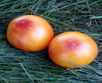 Плоды золотистые с розовым муаром, округло-плоские, вкусные, невероятно сладкие. Чем дольше они на кусте, тем краснее шапочка. Масса плодов 120 - 150 г. Среднерослый, среднеспелый, урожайный сорт. Кусты могут вырасти до 1,5 м.