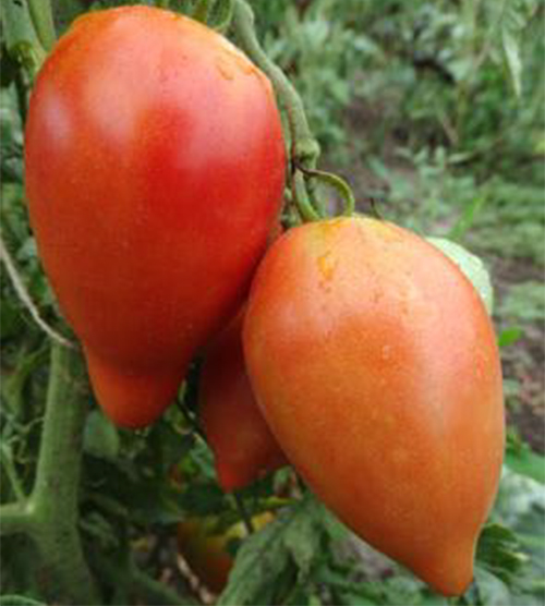 Плоды красные, красивой сердцевидно-удлиненной формы. Масса плодов 100 - 200 г. Мякоть красного насыщенного цвета. Прекрасно подходят для еды, идеальны для консервации, нормально переносит дальние перевозки (конечно если плоды не переспевшие). При выращивании в открытом грунте без полива высота кустов около 1,2 м. При поливе или в теплице кусты будут намного выше. Хотя из-за повышенного увлажнения от полива или дождей, на плодах могут появиться микро трещинки. Кусты не загущенные, в кистях по 5-7 плодов. Среднеспелый, очень урожайный сорт.