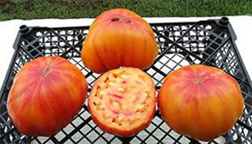 Плоды розово-оранжевые снаружи и внутри, округло-ребристые, с толстой оболочкой, очень мясистые, очень вкусные и сладкие. Масса плодов 200 - 600 г. Высокоурожайный средне-поздний сорт. Кусты мощные, высотой до 1,5 м, устойчивы к заболеваниям.